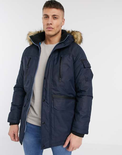 Jack Jones Core parka with removable faux fur hood in navy ASOS