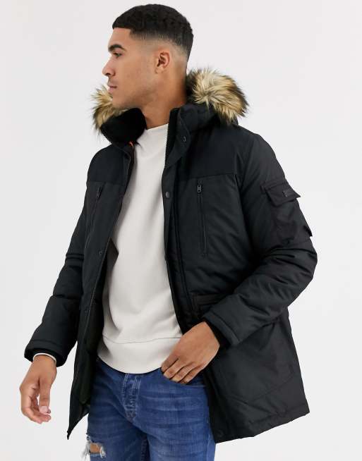 Jack jones core parka clearance, Jack Jones Core parka with removable faux fur hood ASOS clearance