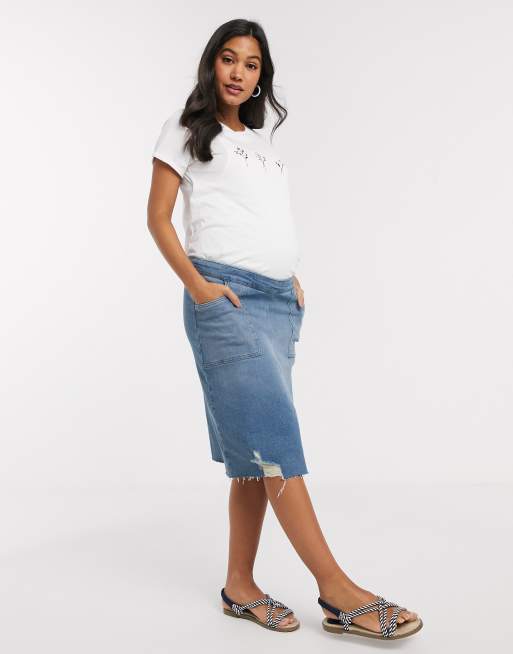 GeBe Maternity over the bump midi denim skirt in midwash blue ASOS