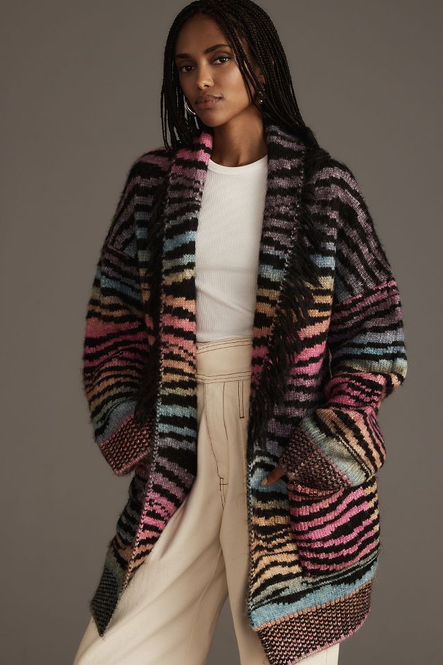 John Jenn Rainbow Zebra Cardigan Sweater Anthropologie