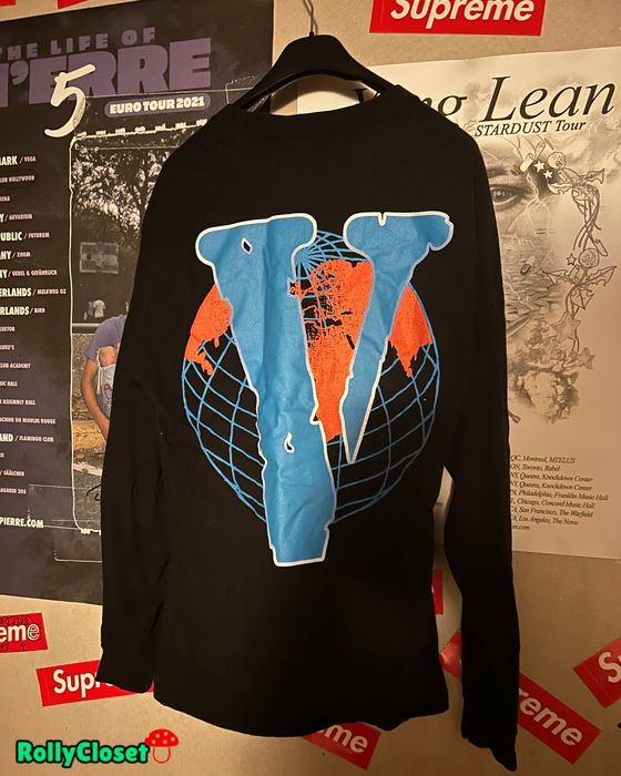 Vlone x Juice Wrld 999 Globe Long Sleeve Tee Shirt Black