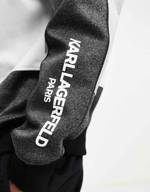 Karl lagerfeld black hoodie clearance, Karl Lagerfeld color block logo hoodie in gray clearance