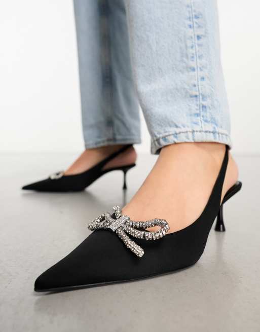 Kitten heels mango clearance, Mango sequin bow detail sling back kitten heel in black clearance