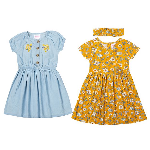 Baby Girl Little Lass 2 Pack Floral Dresses Headband Set