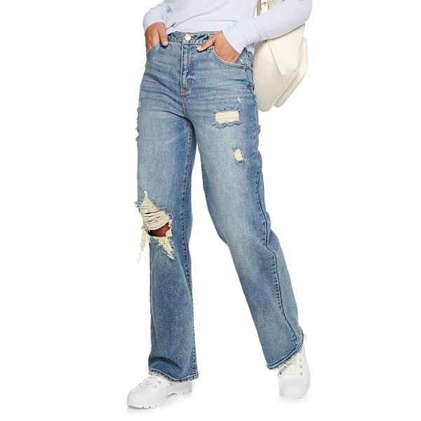 Juniors SO Wide Leg Denim Jeans with Angled Zip