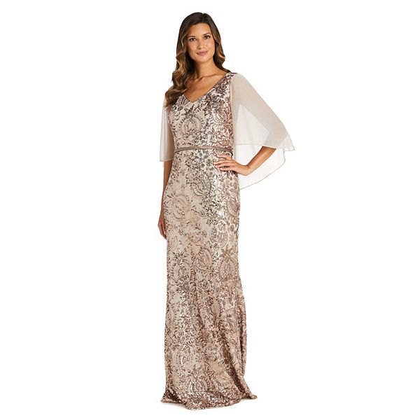 Women s R M Richards Embroidered Sequin Capelet Evening Gown