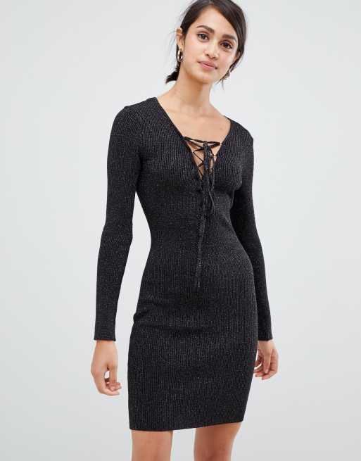 Lace up jumper dress clearance, Stacked Lace Up Side Hollow Out Mini Dress For Women Autumn Long Sleeve Turtleneck Sexy Package Midi Dress Club Party Vestido clearance