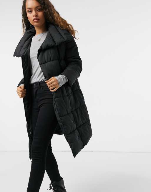Y.A.S. Petite Salina large collar long padded jacket in black ASOS