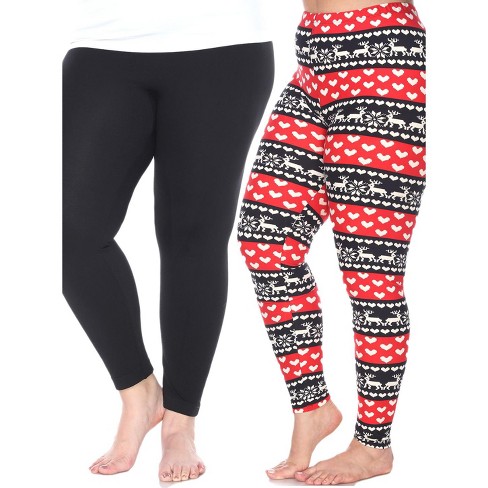 Women s Pack of 2 Plus Size Leggings Black Red White One Size Fits Most Plus White Mark