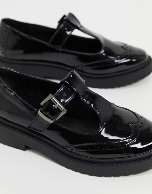 Ladies patent flat shoes clearance, ASOS DESIGN Maisie chunky mary jane flat shoes in black patent clearance