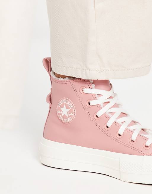 Converse Lift Hi leather sneakers with borg lining in pink PINK