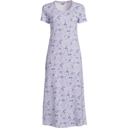 Lands End Women s Cotton Short Sleeve Midcalf Nightgown Large Lavender Cloud Classic Floral