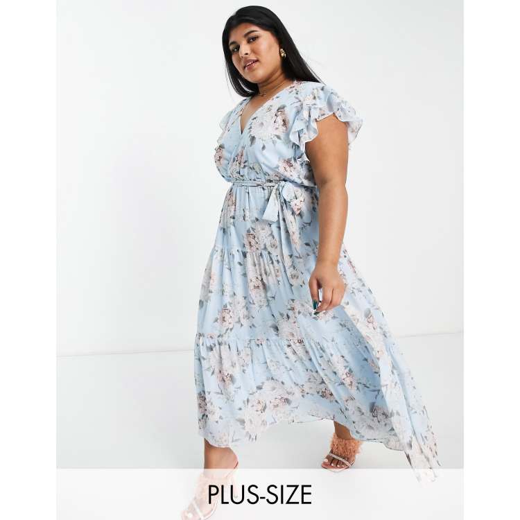 Ever New Curve ruffle shoulder midi dress in blue floral ASOS