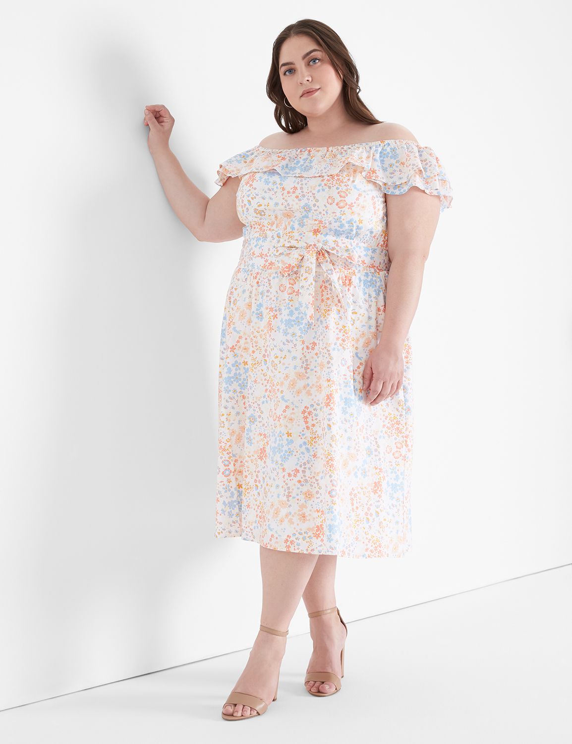 Lane Bryant Womens Off the Shoulder Ruffle Maxie Dress Plus 14 16
