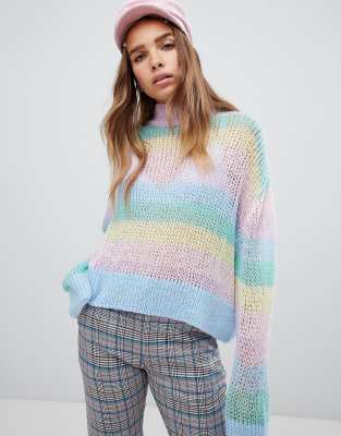 Lazy Oaf pastel rainbow stripe fine knit sweater ASOS