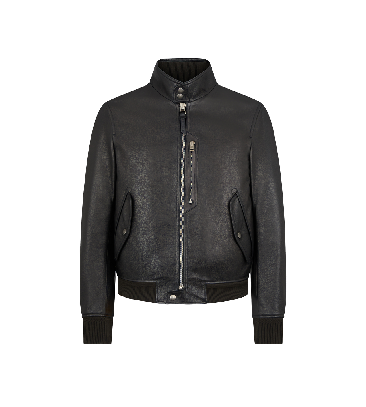 GRAIN LEATHER HARRINGTON WITH ZIP