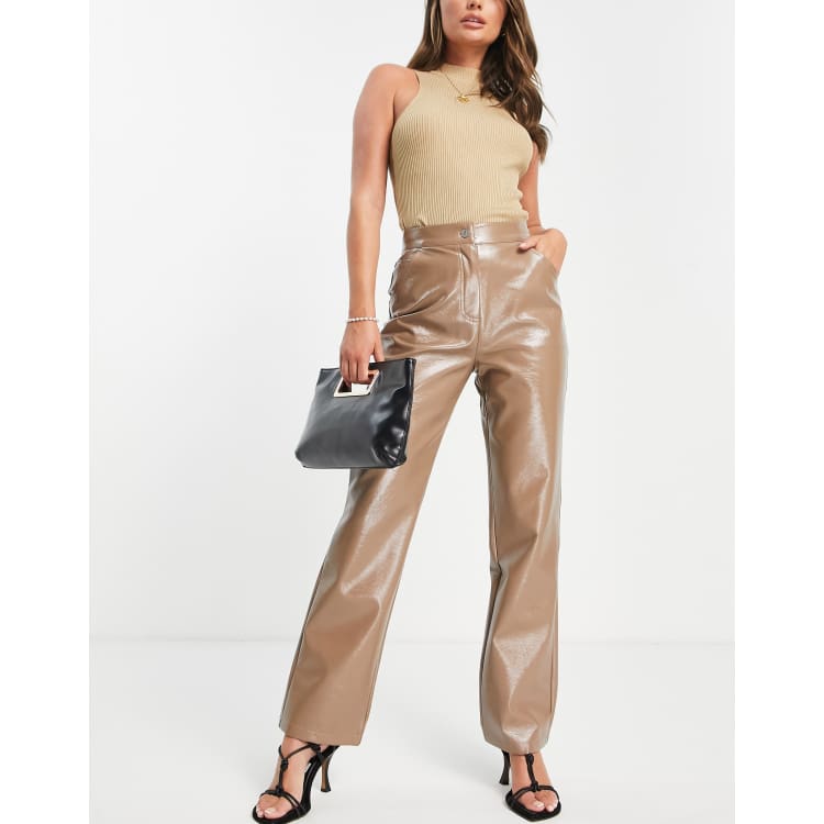 Leather look trousers size 18 clearance, 4th Reckless leather look pants in mocha ASOS clearance