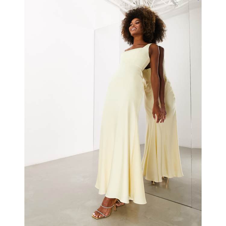 Lemon bridesmaid dresses asos clearance, ASOS DESIGN Bridesmaid satin square neck maxi dress in lemon clearance