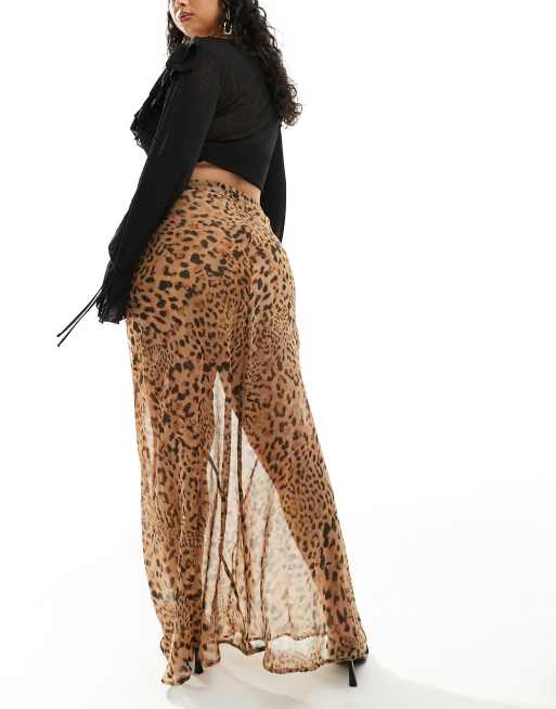 ASOS DESIGN Curve sheer maxi skirt in leopard print ASOS