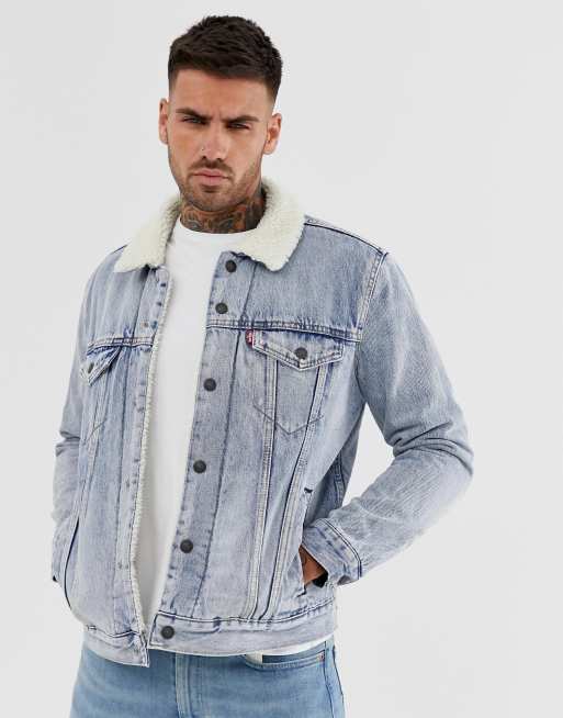 Levi s stonebridge denim borg trucker denim jacket in light wash
