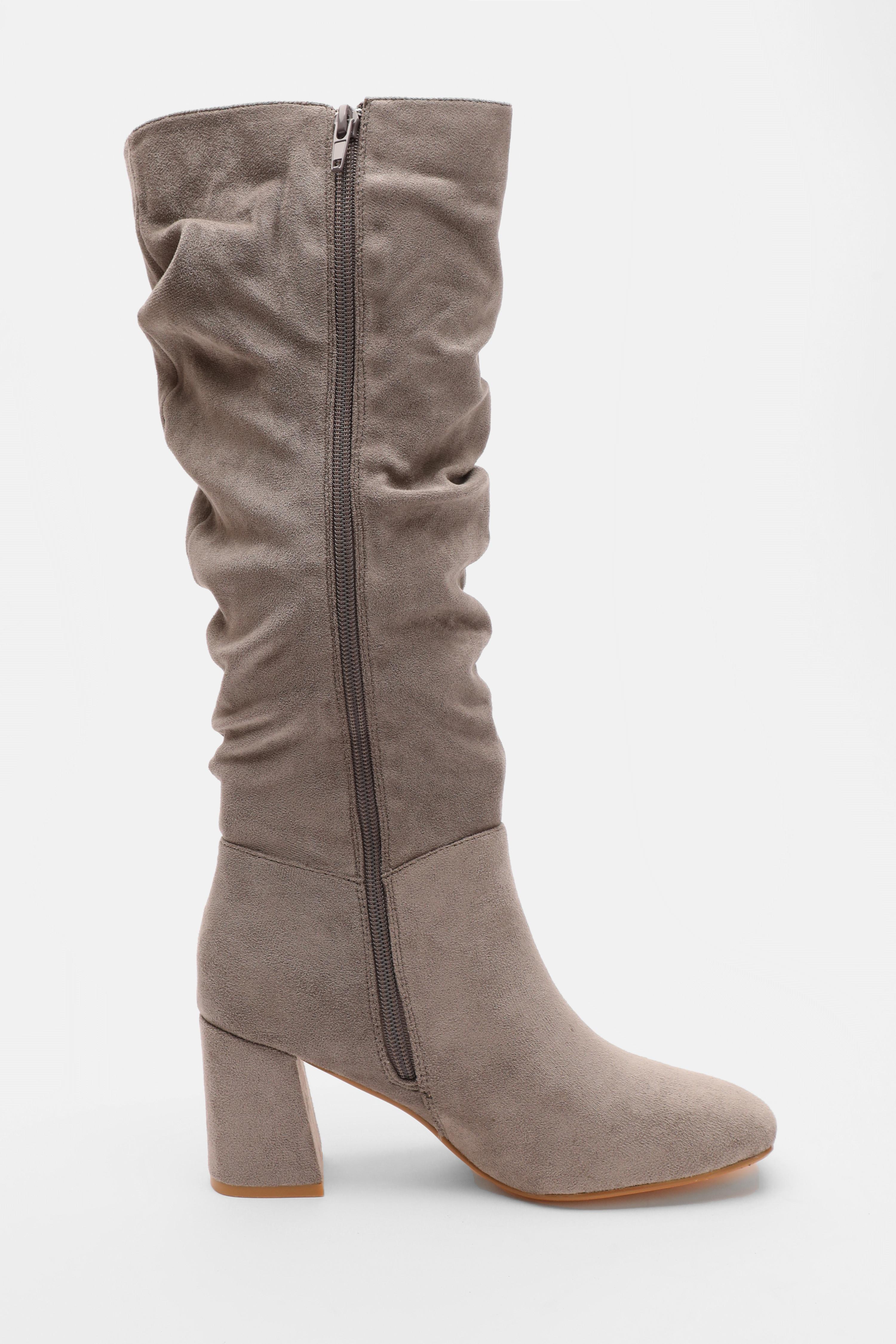 Grey Faux Suede Ruched Heeled Boots QUIZ Clothing