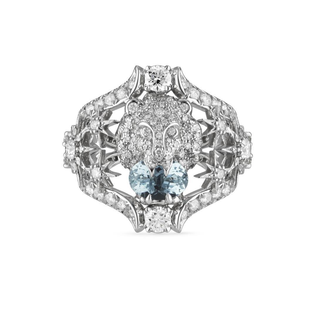 Gucci Lion Head Aquamarine Diamond Ring in 18ct White Gold LOU