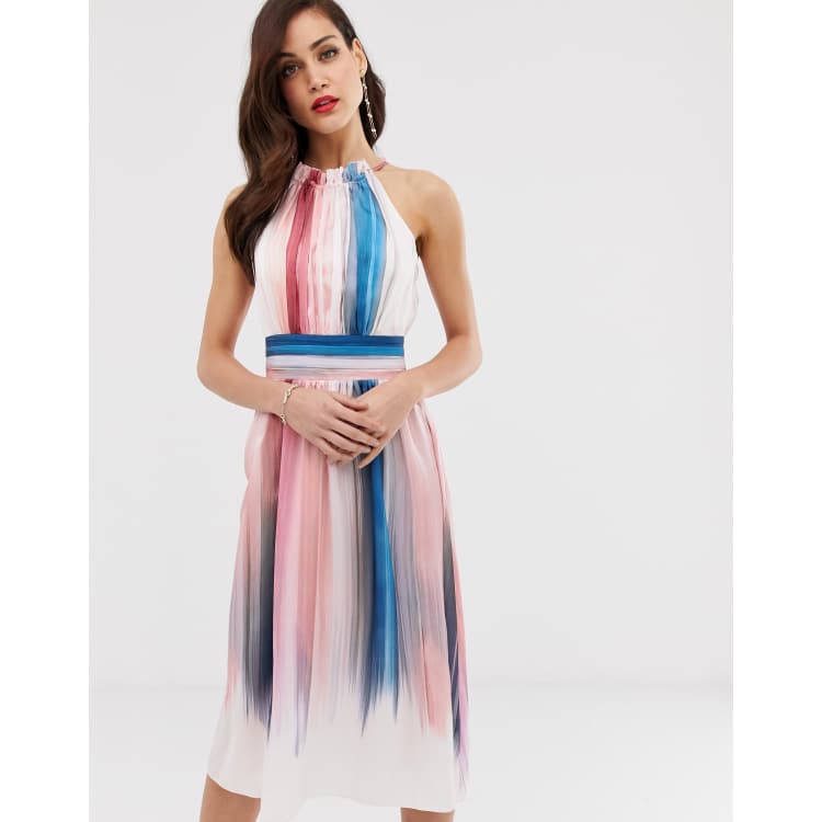 Little Mistress ombre stripe pleated printed midi dress ASOS