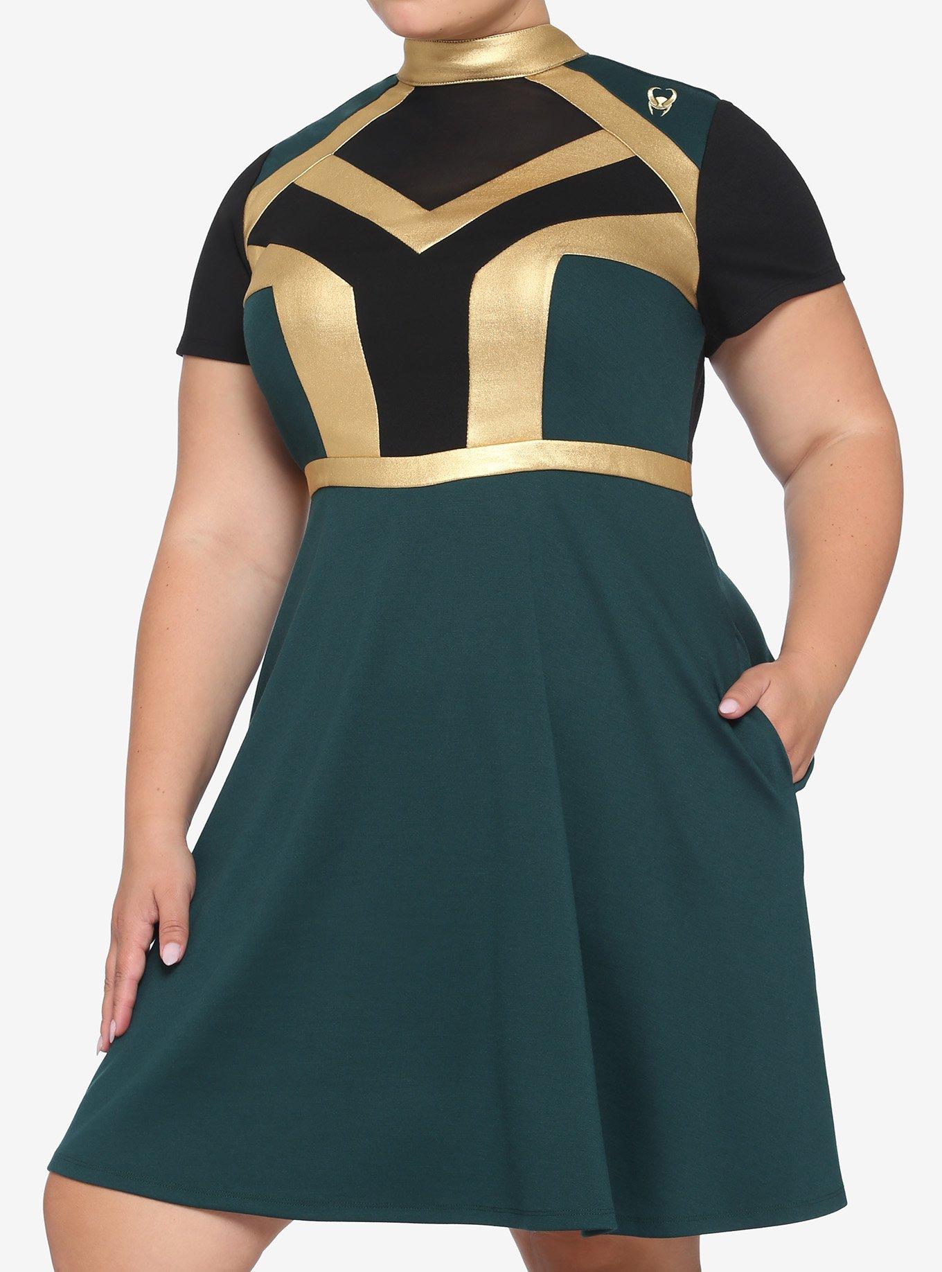Her Universe Marvel Loki Mock Neck Mesh Inset Panel Dress Plus Size