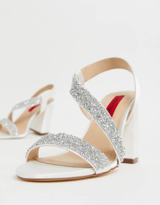 London Rebel embellished bridal block heel sandal in ivory ASOS