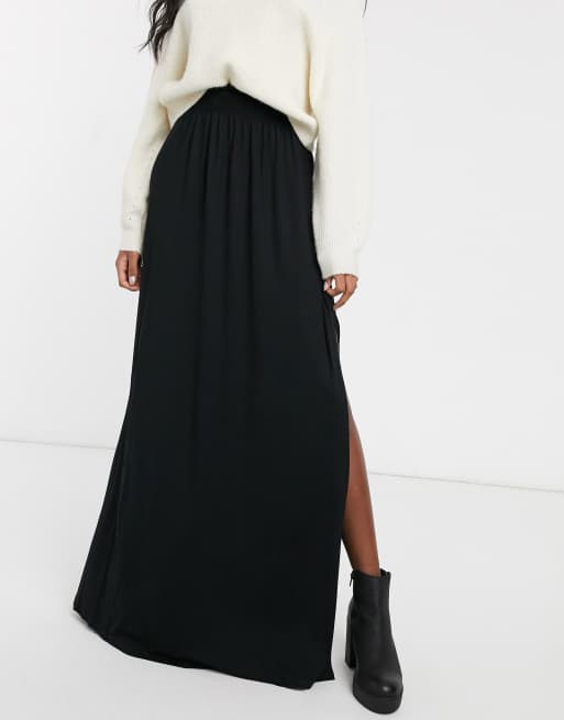 Black Satin Maxi Skirt Urban Bliss SilkFred