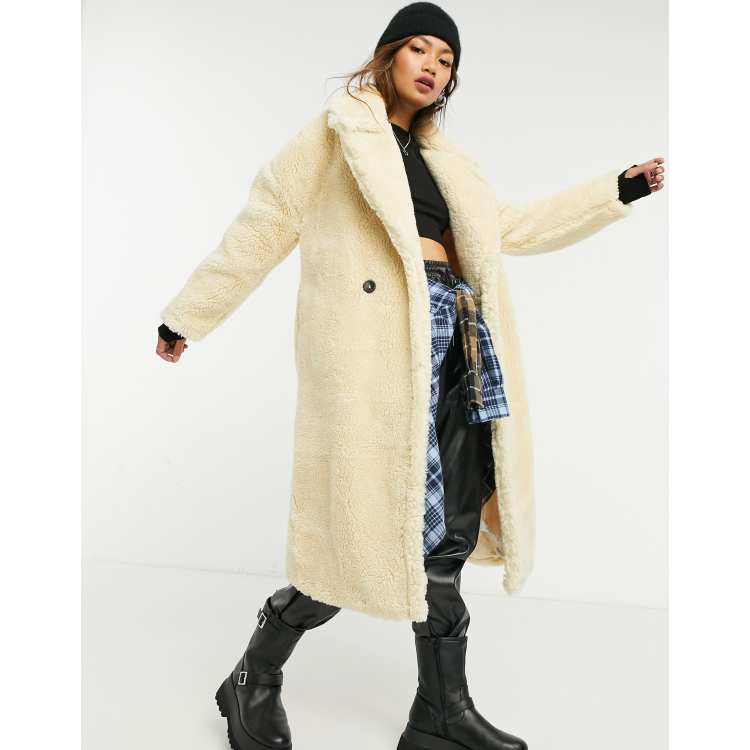 Topshop Cream Borg Cocoon Coat Sizes UK 6 eBay