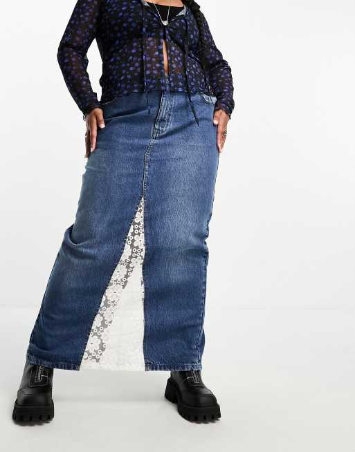 Tammy Girl Plus 90s maxi denim skirt with lace insert ASOS