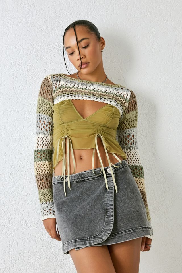 Long denim skirt urban outfitters clearance, BDG Green Tint Denim Extreme Mini Skirt Urban Outfitters UK clearance