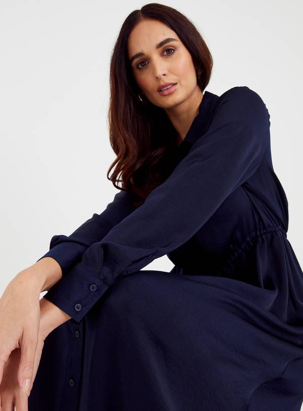 Buy Navy Satin Midi Shirt Dress 8L Dresses Tu