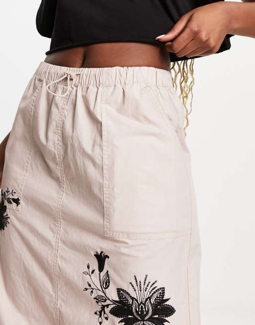 ASOS DESIGN side ruched cargo maxi skirt with embroidery