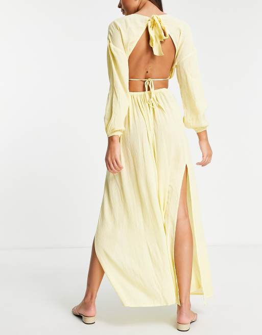 ASOS DESIGN cut out lattice waist maxi beach dress in yellow