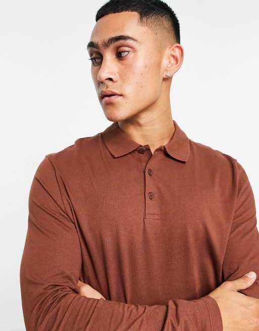 Long sleeve polo shirts asos clearance, ASOS DESIGN long sleeve polo in dark brown ASOS clearance