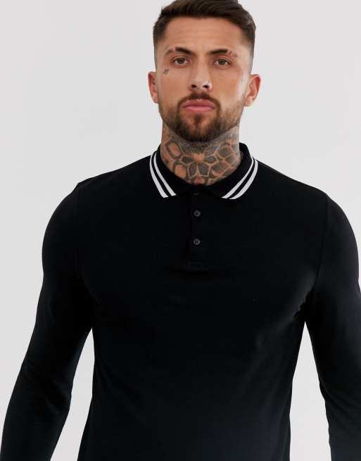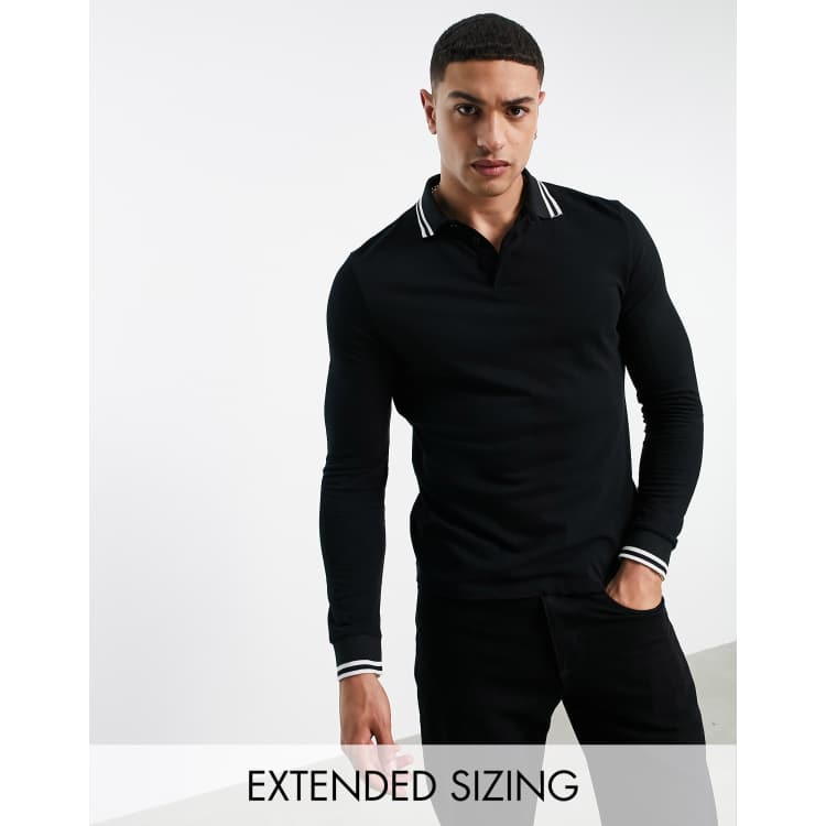 ASOS DESIGN long sleeve tipped pique polo shirt in black ASOS