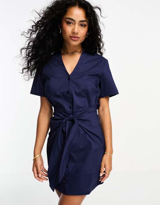 Mango Robe chemise cintr e nou e la taille avec manches courtes Bleu marine