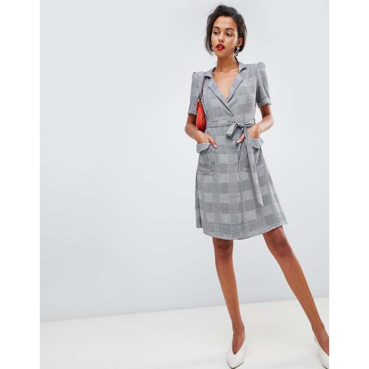 Mango wrap front check dress in grey