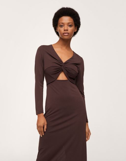 Mango Robe mi longue d coupe et manches longues Marron ASOS