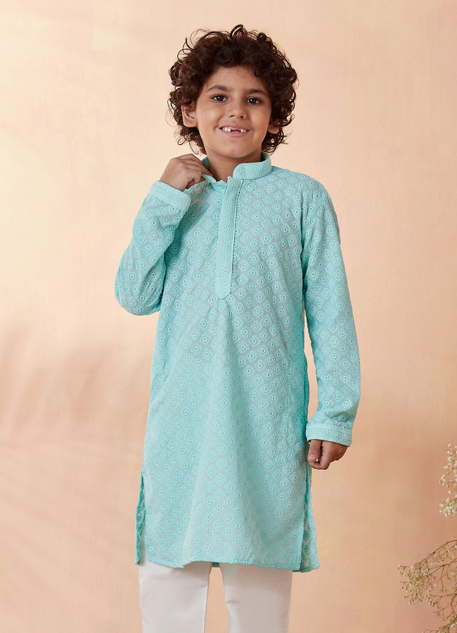 Manyavar kurtas for kids clearance, Boys Sea Green Chikan Kurta Set clearance