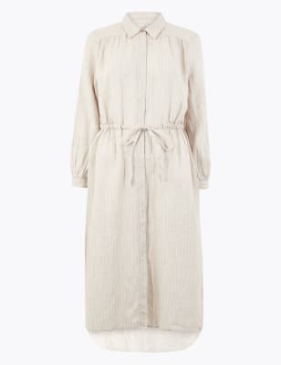 Marks and spencer petite dresses clearance, PETITE Pure Linen Striped Shirt Midi Dress M S Collection M S clearance