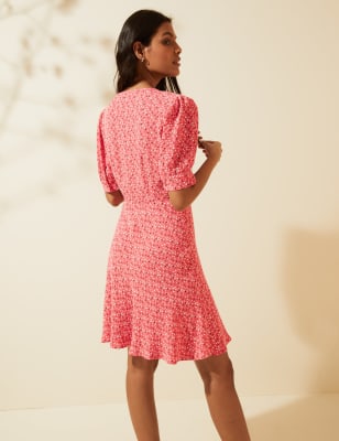 Floral V Neck Puff Sleeve Mini Tea Dress M S X GHOST M S