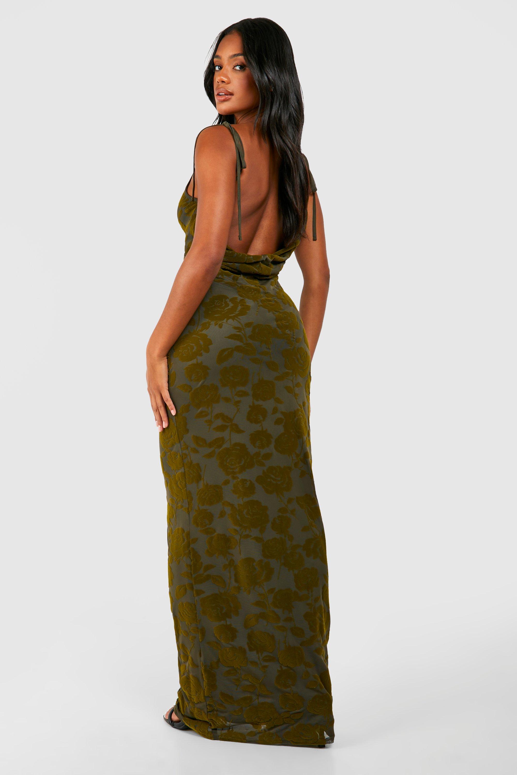 Women s Floral Devore Cowl Maxi Slip Dress Boohoo UK