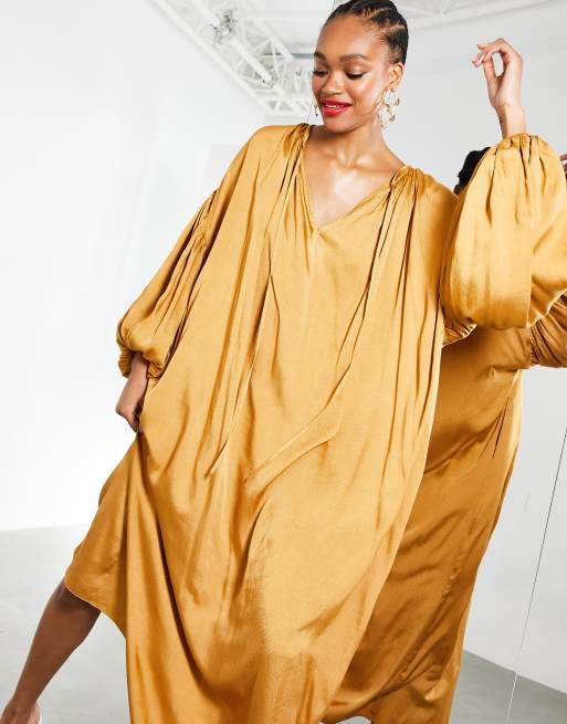 ASOS EDITION oversized maxi dress with blouson sleeve in caramel