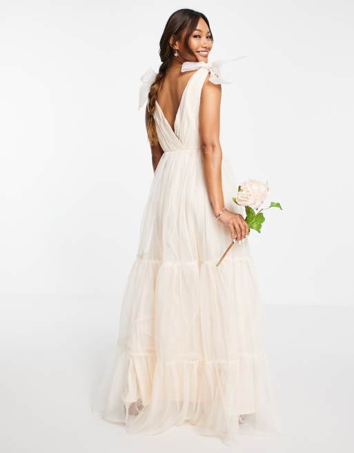 ASOS DESIGN tulle bow tie tiered maxi dress in gold