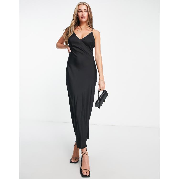 ASOS DESIGN Fuller bust high apex satin maxi slip dress in black