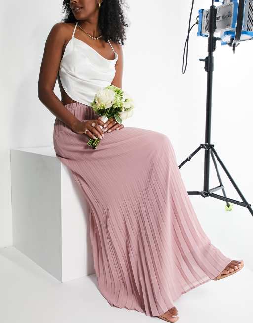 TFNC Bridesmaid pleated maxi skirt in dusty rose