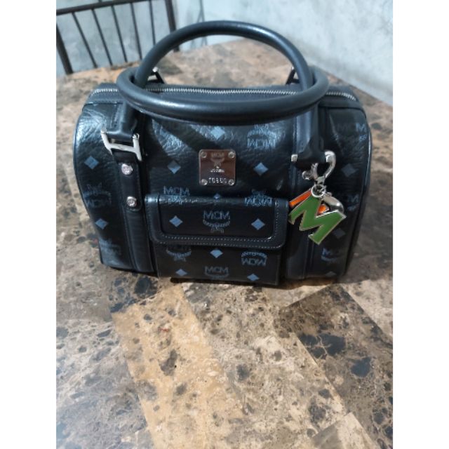 Mcm boston bag black clearance, 100 Authentic MCM Black Purple Visetos Lion Boston Hand Bag eBay clearance